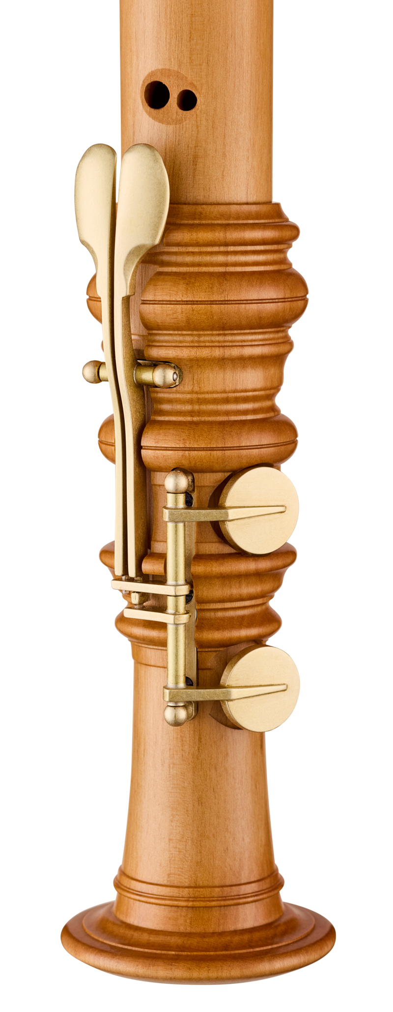 Der aufgrund der langen Mensur obligatorische Klappensatz fußt auf einem Konzept, das - die historische Form wahrend - den heutigen technischen und funktionalen Ansprüchen mühelos gerecht wird. Seine edle, filigrane und doch robuste Bauweise garantiert das verlässliche und nahezu geräuschlose Abdecken der Tonlöcher auch bei schnellen Tonfolgen.