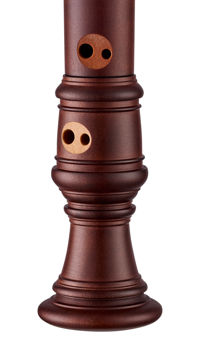 Das für dieses Instrument verwendete Birnbaumholz (pyrus communis) stammt aus Europa. Das Holz ist dunkel gebeizt, aber hat die gleichen Eigenschaften wie Birnbaumholz in natürlicher Optik. Es ist fest, gleichmäßig dicht mit feiner Struktur. Das Holz sorgt für einen warmen und grundtönigen Klang. Diese Holzsorte gehört zu den weicheren Hölzern unseres Sortiments.