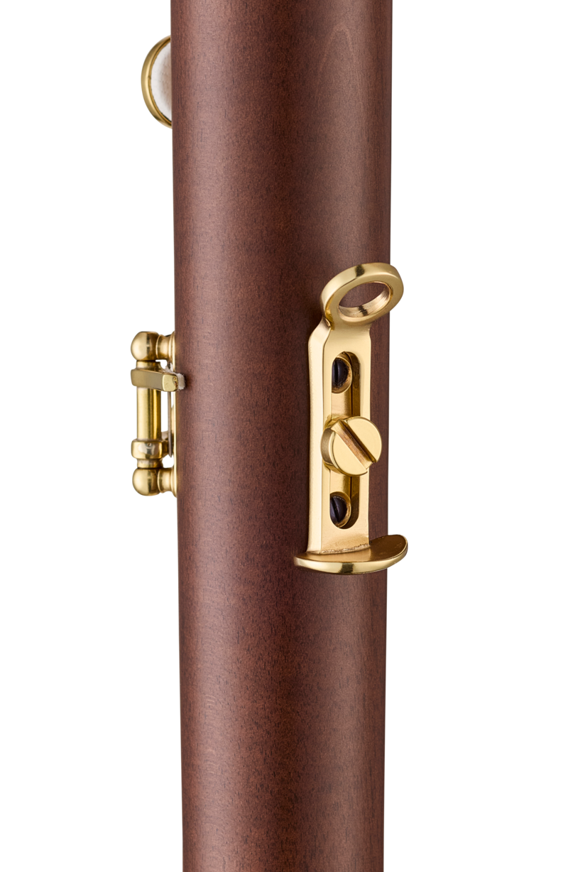 Das für dieses Instrument verwendete Ahornholz (acer pseudoplatanus) stammt aus Europa. Das Holz ist dunkel gebeizt, aber hat die gleichen Eigenschaften wie Ahornholz in natürlicher Optik. Es ist fest, feinporig und elastisch und sorgt für einen warmen und grundtönigen Klang. Diese Holzsorte gehört zu den weicheren Hölzern unseres Sortiments.