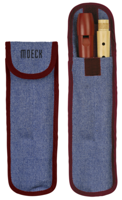 Baumwolltasche aus Jeansmaterial mit rotem Saum. Für unsere Modelle Flauto 1 und Flauto 1 Plus in deutscher Griffweise.