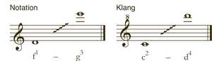Quartflöte, notiert cis2–d3 im G1-Schlüssel in F-Dur