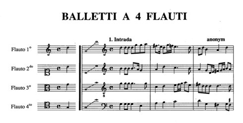 Anonym: Balletti a 4 flauti für 4 Blockflöten d2 g1 c1 c1; Editio simiae ludentes, Prag SL 6