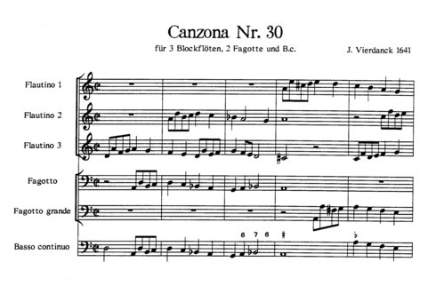 Vierdanck, Johann: Canzona 30 für 3 Blockflöten g1 g1 g1, 2 Fagotte, B. c.; Lubenow VD 41.30