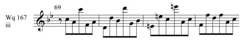 - Dieselbe Beschränkung zwang ihn auch, in Wq 167/iii/72 das f3 zu vermeiden (siehe Bsp. 3).