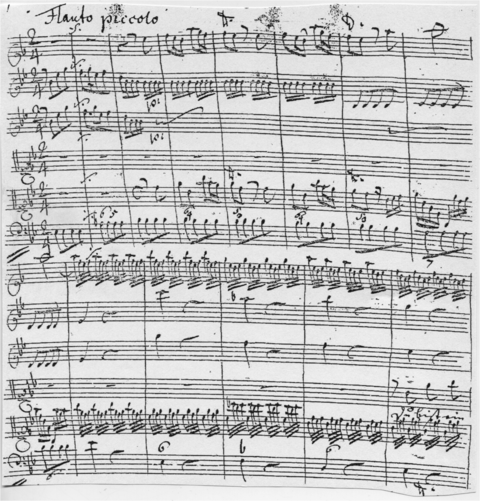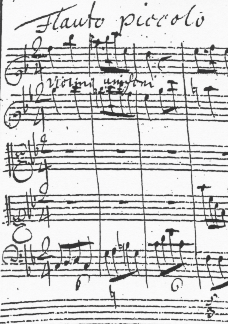 Untersucht man den Tonumfang der beiden Piccolostimmen anhand der von Harald Kümmerling edierten Partitur, so beträgt dieser in der ersten Stimme notiert h1–e3, in der zweiten e1–e3. In der handschriftlichen Kölner Partitur sind allerdings zahlreiche Takte der Piccolostimmen nicht ausgeschrieben, sondern durch Kustoden als Unisonoführungen mit den Flauti traversi und den Fagotten kenntlich gemacht. Zu diesen Stellen gehört auch der Takt 123, in dem zweimal das notierte e1 vorkommt.