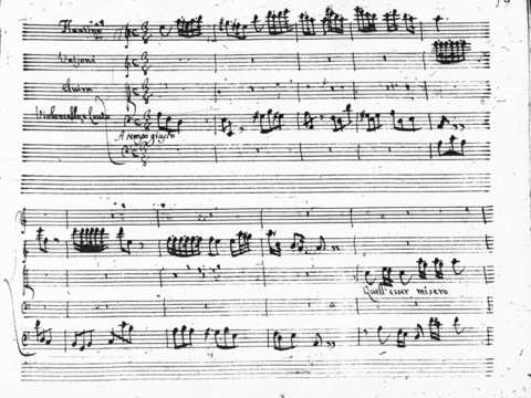 Quell’esser misero (a-Moll) aus der Oper Il prigioniero fortunato, Neapel 1698, für Sopran, Flautino (notiert d2–e3), Violine, (Violine II, Viola ad lib.), B. c.8