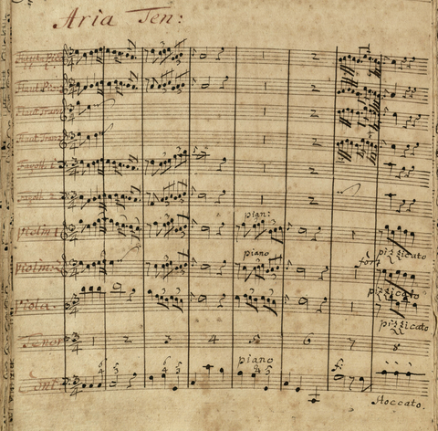 Pianga pure al duol (B-Dur) aus der Kantate Humanità e Lucifero, Rom 1704, für Tenor, Flautino (notiert b1–es3), Violine, Viola, Violoncello, B. c.13
