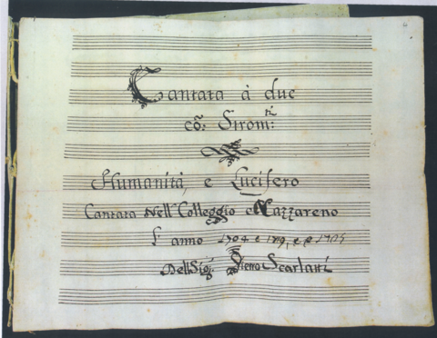 Ein weiteres Flautino-Solo ist in der Kantate Humanità e Lucifero zu finden, die gelegentlich irrtümlich Alessandro Scarlatti zugeschrieben wird. Die älteste Quelle, die heute noch am Ort der Uraufführung12 aufbewahrt wird, nennt jedoch dessen Sohn Pietro Filippo Scarlatti (1679–1750) als Komponisten: