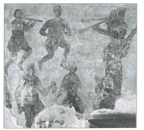 Eine weitere Abbildung einer Flötenspielerin befindet sich auf einer Wandmalerei im Südturm der Sophienkathedrale in Kiew aus dem Jahr 1037 (s. Abb. 5).