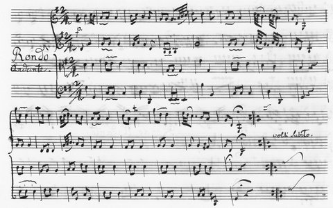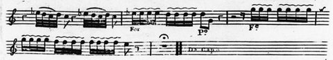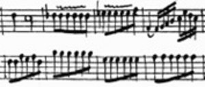 „Im Violinrepertoire erscheint das Bogentremolo in verschiedenen Formen. Es kann auf drei verschiedene Arten notiert werden: