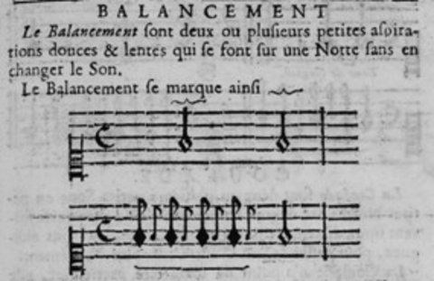 [21] „Le Balancement, que les Italiens appellent Tremolo, produit l’effet du tremblant de l’Orgue.“ Michel Pignolet de Montéclair: Principes de Musique, Paris 1736, S. 85.