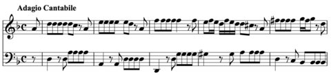 - - Im 1. Satz (Adagio Cantabile) der Sonata Quarta (Abb. 29). Der systematische Einsatz von Tremolo in der Oboe und im Bass verleiht diesem Satz eine besondere Klanglichkeit.