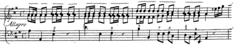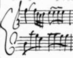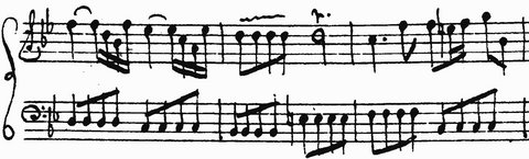 - - Im Takt 14 des 1. Satzes der Sonata Secunda, sowie in der Bassstimme des 3. Satzes derselben Sonate.