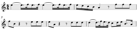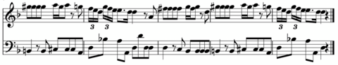 - Gebundene Achtel: eine Folge von zwei oder vier gebundenen Achteln derselben Tonhöhe.