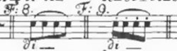 „Wenn über Noten, die auf einerley Tone stehen, ein Bogen befindlich ist (Fig.8); so müßen selbige durch das Hauchen, mit Bewegung der Brust, ausgedrücket werden. Stehen aber über solchen Noten zugleich Punct (Fig. 9); so müssen diese Noten viel schärfer ausgedrücket und so zu zagen mit der Brust gestoßen werden.“30