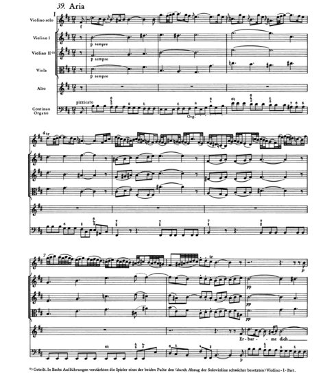 Und damit sind wir bei einem Schlüsselwerk des Siciliano, in der wir diese Technik wiederfinden: in der berühmten Arie Erbarme dich für Alt, Solovioline, Streicher und B. c. aus der Matthäus-Passion.