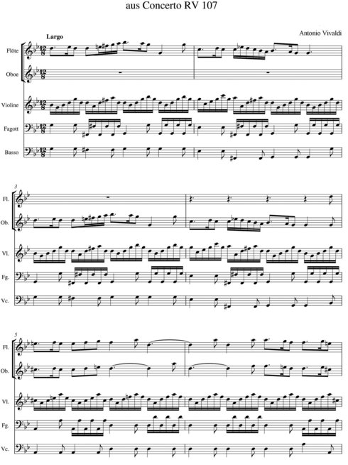 Betrachten wir zunächst wieder einen Satz von Antonio Vivaldi aus seinem Concerto da camera RV 107: