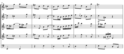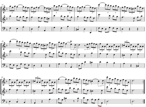Gegen eine solche Deutung spricht jedoch der Bass: es ist ganz eindeutig kein typischer Gigue-Bass, sondern in seiner periodischen Struktur der eines Menuetts.