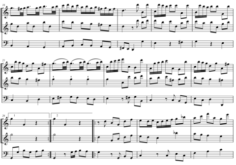 Hier zwei Beispiele: die Variations-Schlusssätze der Sonaten a-Moll und e-Moll, einem Menuett und einem Thema im 2/4-Takt.