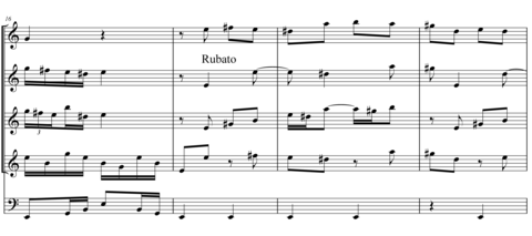 (Es liegt in der Natur der Sache, dass aus einer Variation die Umrisse des ursprünglichen Themas nicht in ähnlich eindeutiger Form herauslesbar sind wie bei einer lediglich verzierten Stimme – insofern sind zuweilen auch andere melodische Wendungen als in meiner hypothetischen Version vorstellbar.)