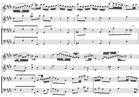 Ich muss gestehen, persönlich immer große Probleme mit dem Verständnis des Schlusssatzes von Bachs E-Dur-Sonate BWV 1035 gehabt zu haben: die Schreibweise der Flötenstimme entspricht so überhaupt nicht vertrauten Mustern anderer Melodiestimmen Bachs, zudem überraschen der merkwürdige Beginn mit dem „Auftakt zum Auftakt“ – die Bezeichnung Allegro assai, das scheinbar unmotivierte Basssolo gleich zu Beginn etc., etc.