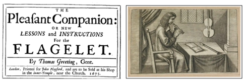 Die Geschichte des Flageoletts38 in England im 17. Jahrhundert ist durch Lenz Meierott39, Douglas Macmillan40 und andere Autoren sehr gut beschrieben worden, sodass ich hier für weitere Informationen auf diese Quellen verweise. Das Instrument kam in den 60er Jahren des 17. Jahrhunderts mit französischen Musikern ins Land, die den Kontinent verlassen hatten, um an den wiederhergestellten Hof Karls II. zu wechseln, und fand bald eine breite Akzeptanz bei Amateurmusikern wie Samuel Pepys (1633–1703)41 und seiner Frau Elisabeth (1660–1669).