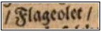 [38] In der zweiten Hälfte des 17. Jahrhunderts wurden in England verschiedene Varianten des Begriffs verwendet: flagellett, flagelet, flajolet.