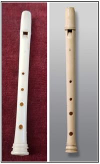 [34] Obwohl dieser Ring nicht unbedingt notwendig ist, da es auch viele Original-Flageoletts ohne ihn gibt, hilft er, das Instrument zu halten.