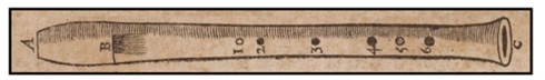 [26] „… a quatre pouces & cinq lignes de longueur“, Mersenne, 1636, Livre V, S. 235.