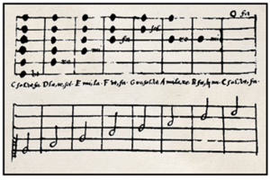 [50] M. Engelhardt / Chr. Hust (Hg.): Athanasius Kircher, Musurgia universalis, Liber VI, 3. Teil, Kapitel II, Rom 1650, Übers. G. Scheibel, Revision: J. Langeloh unter Mitarbeit von F. Böhling, www.hmt-leipzig.de/home/fachrichtungen/institut-fuer-musikwissenschaft/forschung/musurgia-universalis/volltextseite, S. 136 [abgerufen am 30.8.2022].