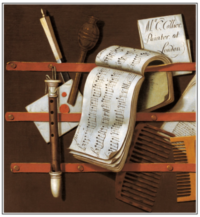 Das Flageolett findet sich auch in einigen Stillleben von Edwaert Collier (1642–1708), die er während seines Aufenthalts in London malte. Sie wurden vermutlich von Liebhabern des Instruments in Auftrag gegeben.
