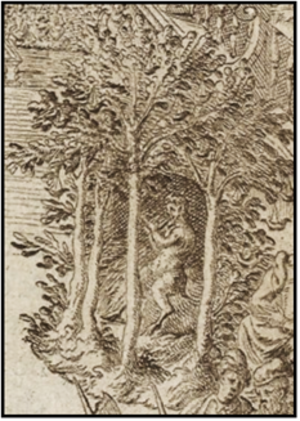 [14] Au milieu d’iceluy estoit le Dieu Pan, assis sur un gazon, devant la grotte que cy-dessus je vous ay effigiée (lequel estoit représenté par le sieur Juvigny, escuyer du Roy, et gentilhomme favori des Muses et de Mars), qui, ayant descouvert les Nymphes des bois approcher son temple, commença en signe de resjouissance pour leur venue, de jouer de son flageolet, duquel il a esté jadis l’inventeur.