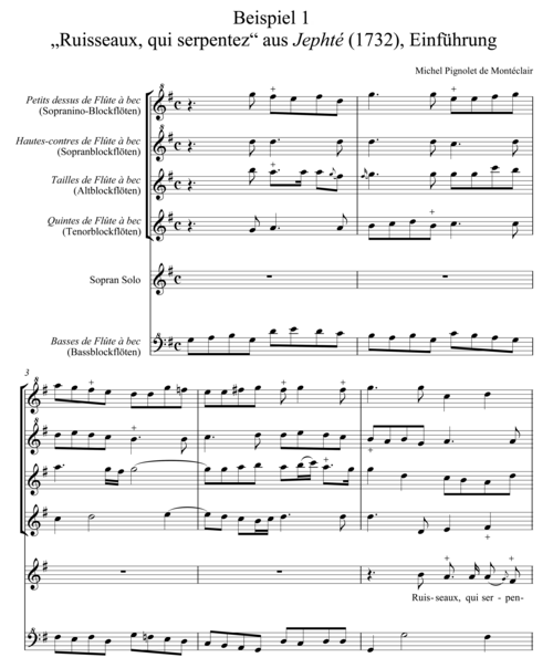 Nach meiner Theorie entstand die Voice Flute zwischen 1668 und 1676 in Frankreich, um die zweite Stimme in Lullys Airs mit zwei Blockflöten in den oberen Stimmen parallel zur hohen Sopran- und regulären Sopranstimme (haut dessus – hoher Sopran und dessus – Sopran) aufzuführen.18 Die Voice Flute lässt sich zurückverfolgen