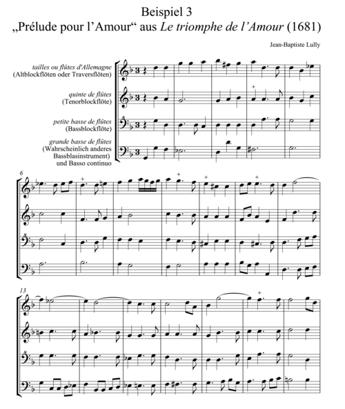Die barocke Tenorblockflöte ist erstmals in Lullys Ballett Le Triomphe de l'Amour (1681) als zweite Stimme in einem Consort belegt. (NB 3)
