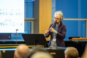 Während die genannten Referenten allesamt Tasteninstrumenten zuzuordnen sind, gab es als erfreuliche Ergänzung mit Giovanna Barbati (Cello und Viola da gamba) und Robert de Brée (Barockoboe und Blockflöte) auch zwei Vertreter von Melodieinstrumenten, die beide eindrucksvoll demonstrierten, wie relevant und ergiebig das Thema „Partimento“ auch für ihre instrumentale Praxis und pädagogische Arbeit ist.