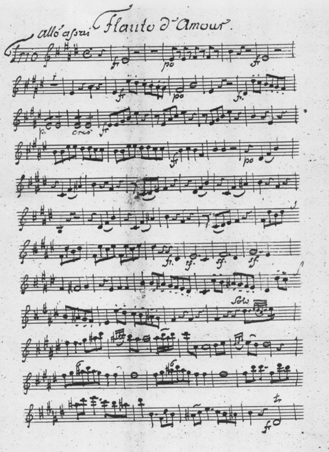 Abb. 2: Beginn der autographen Flauto d’amore-Stimme des Trios C-Dur von Giuseppe Richter. Die Stimme ist transponierend in As notiert.