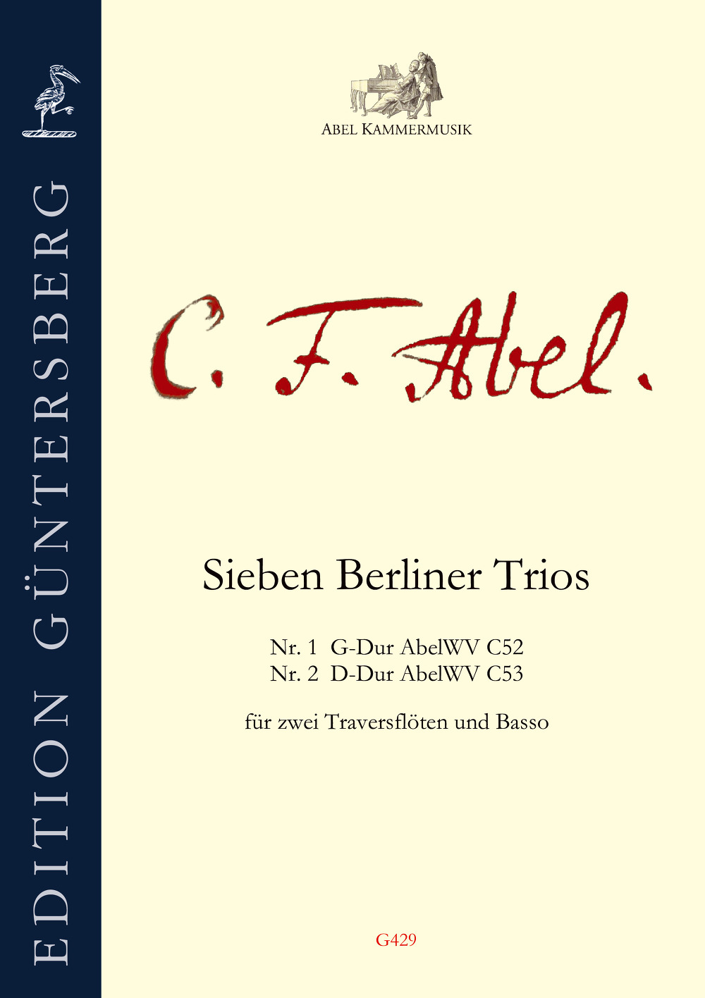 Carl Friedrich Abel: Sieben Berliner Trios, Nr. 1: G-Dur AbelWV C52, Nr. 2: D-Dur AbelWV C53, für zwei Traversflöten und Basso (Hg. Günter und Leonore von Zadow), Reihe: Abel Kammermusik, Heidelberg 2023, Edition Güntersberg, Partitur(...)